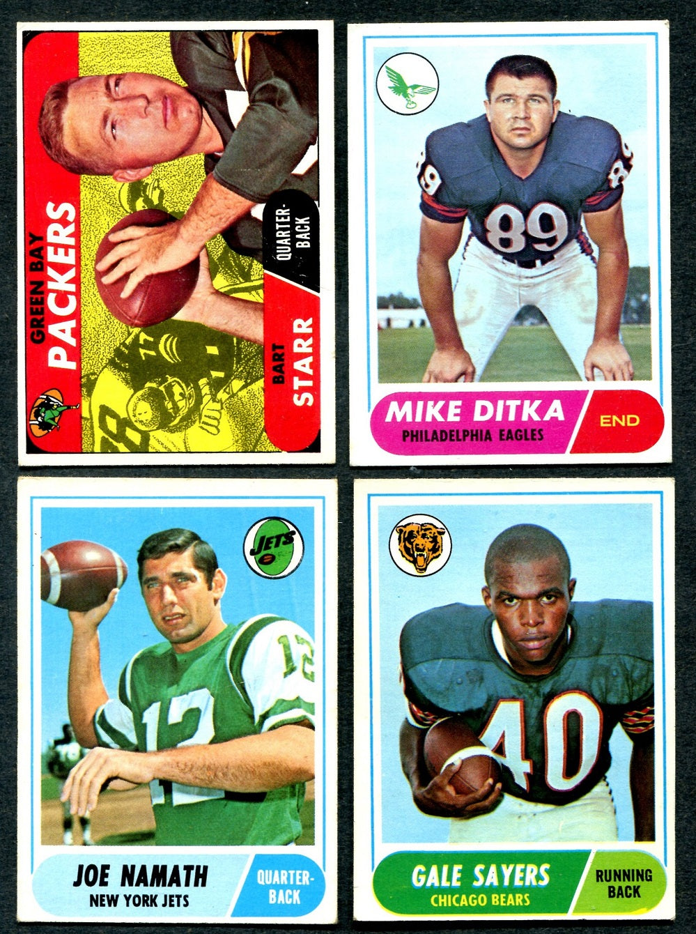 1968 Topps Football Complete Set VG VG/EX (219) (24-531). This complete set of (219) cards has an overall average condition of VG to VG/EX.