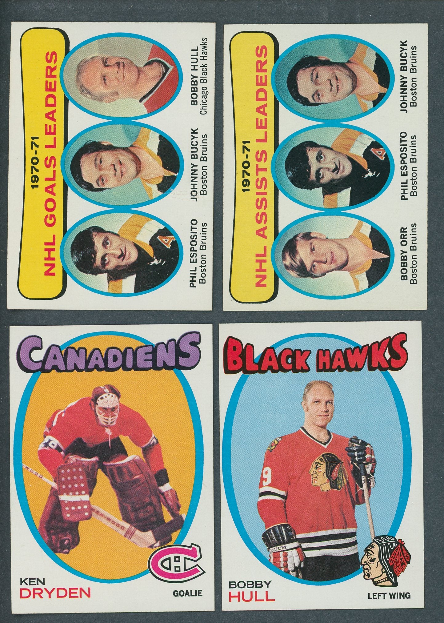 1971/72 Topps Hockey Complete Set NM NM/MT (156) (w/ booklets) (23-91). The cards in this set are clean NM to NM/MT but mostly O/C (off center) left to right. The booklets are NM to NM/MT.
