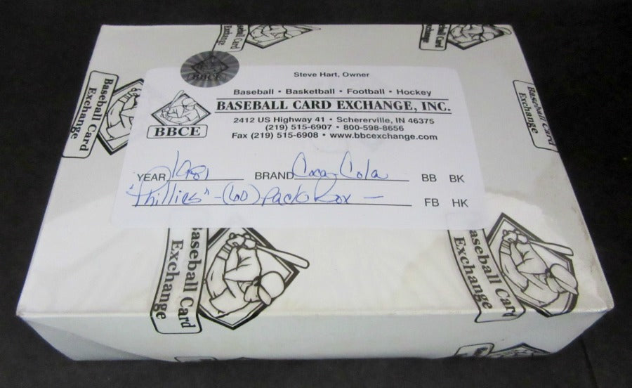 1981 Topps Coca-Cola Baseball Philadelphia Phillies Cello Box (3 Card Pack) (60 Packs). This regional Philadelphia Phillies card set issued by Coca-Cola was released in (3 card) cello packs. This box contains (60) packs.