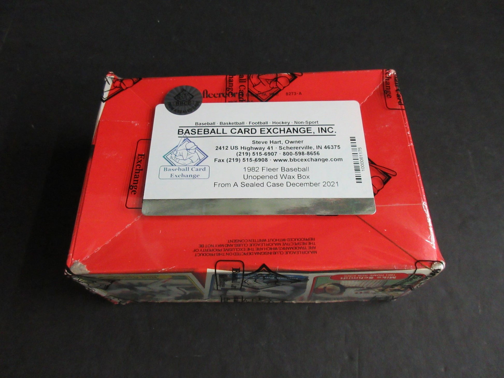 1982 Fleer Baseball Unopened Wax Box (FASC). Each box come from a sealed case that we opened. Boxes will be wrapped in Baseball Card Exchange shrink wrap and marked "From A Sealed Case".