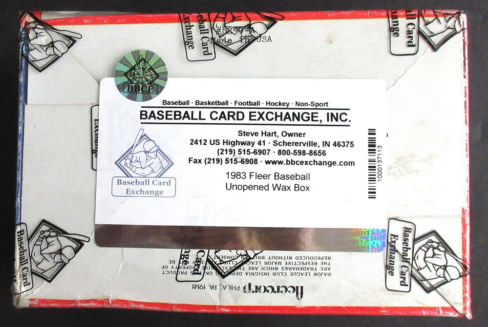 1983 Fleer Baseball Unopened Wax Box (BBCE). This box contains (38) packs (36 plus 2 bonus packs). The box has been authenticated and wrapped in Baseball Card Exchange shrink wrap.