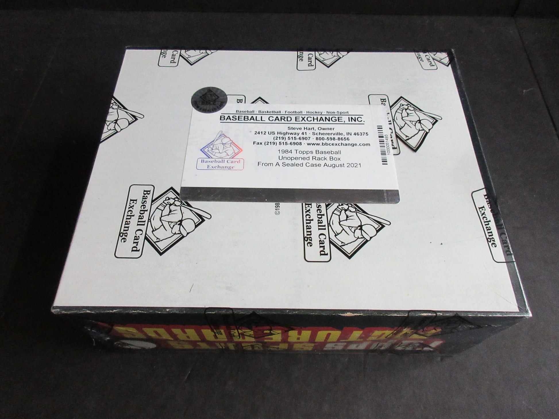 1984 Topps Baseball Unopened Rack Box (FASC). This box contains (24) unopened rack packs. This box has been authenticated as From A Sealed Case and wrapped in Baseball Card Exchange shrink wrap.