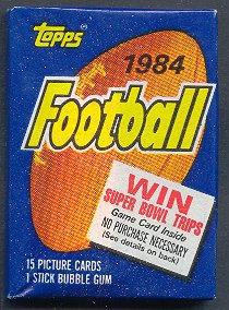 1984 Topps Football Unopened Wax Pack. Each unopened pack contains (15) cards.