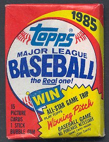 1985 Topps Baseball Unopened Wax Pack (w/ date). Each unopened wax pack contains (15) cards. This was pack is the standard pack that has the wrapper with the date on it.