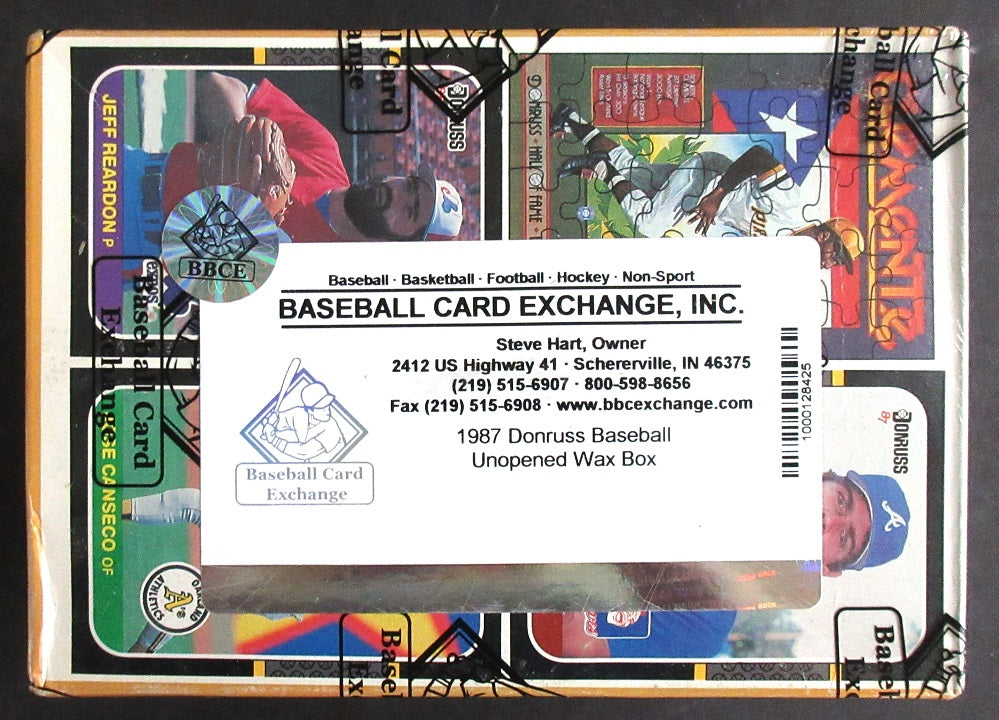1987 Donruss Baseball Unopened Wax Box (BBCE). This box contains (36) packs. The box has been authenticated and wrapped in Baseball Card Exchange shrink wrap.