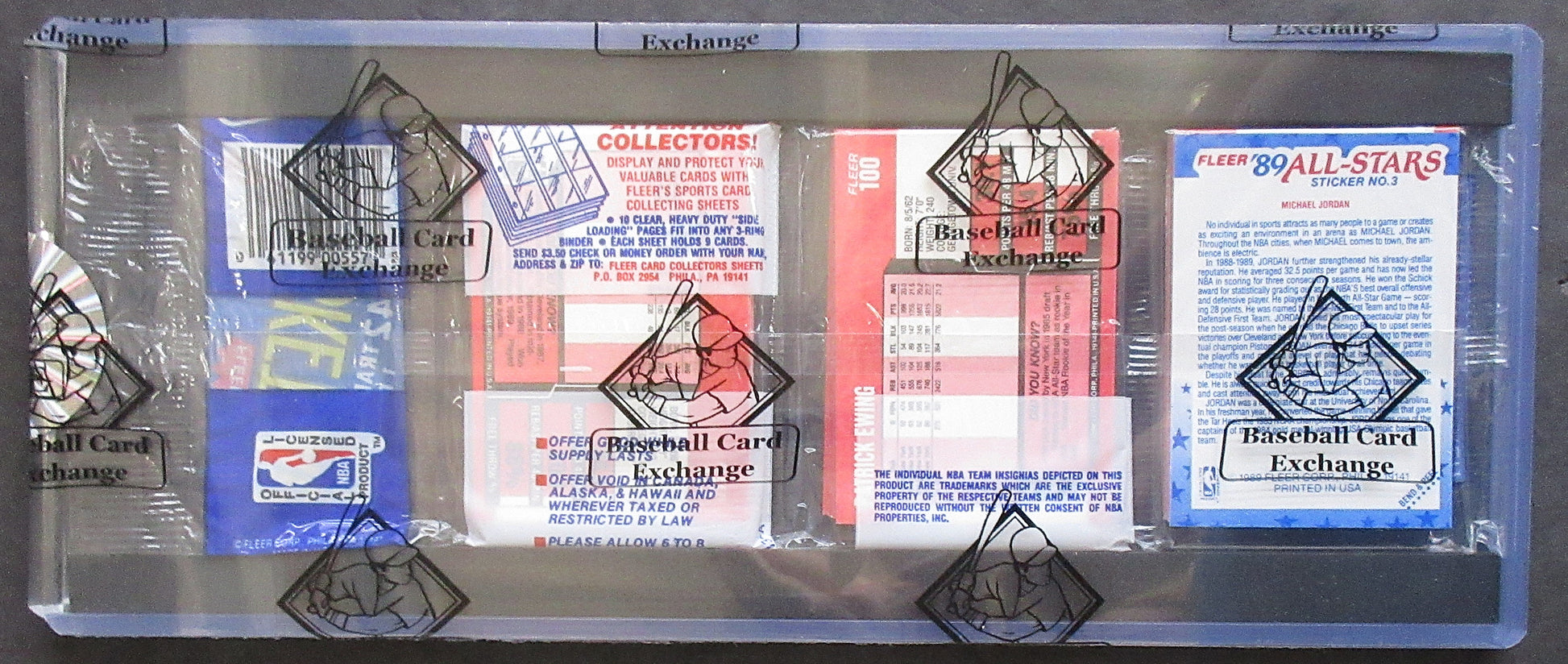 1989/90 Fleer Basketball Unopened Rack Pack (BBCE) (Jordan AS Back) (26124). This unopened rack pack contains (42) cards including the Michael Jordan All Star sticker showing on back. This pack has been authenticated and wrapped in Baseball Card Exchange shrink wrap.