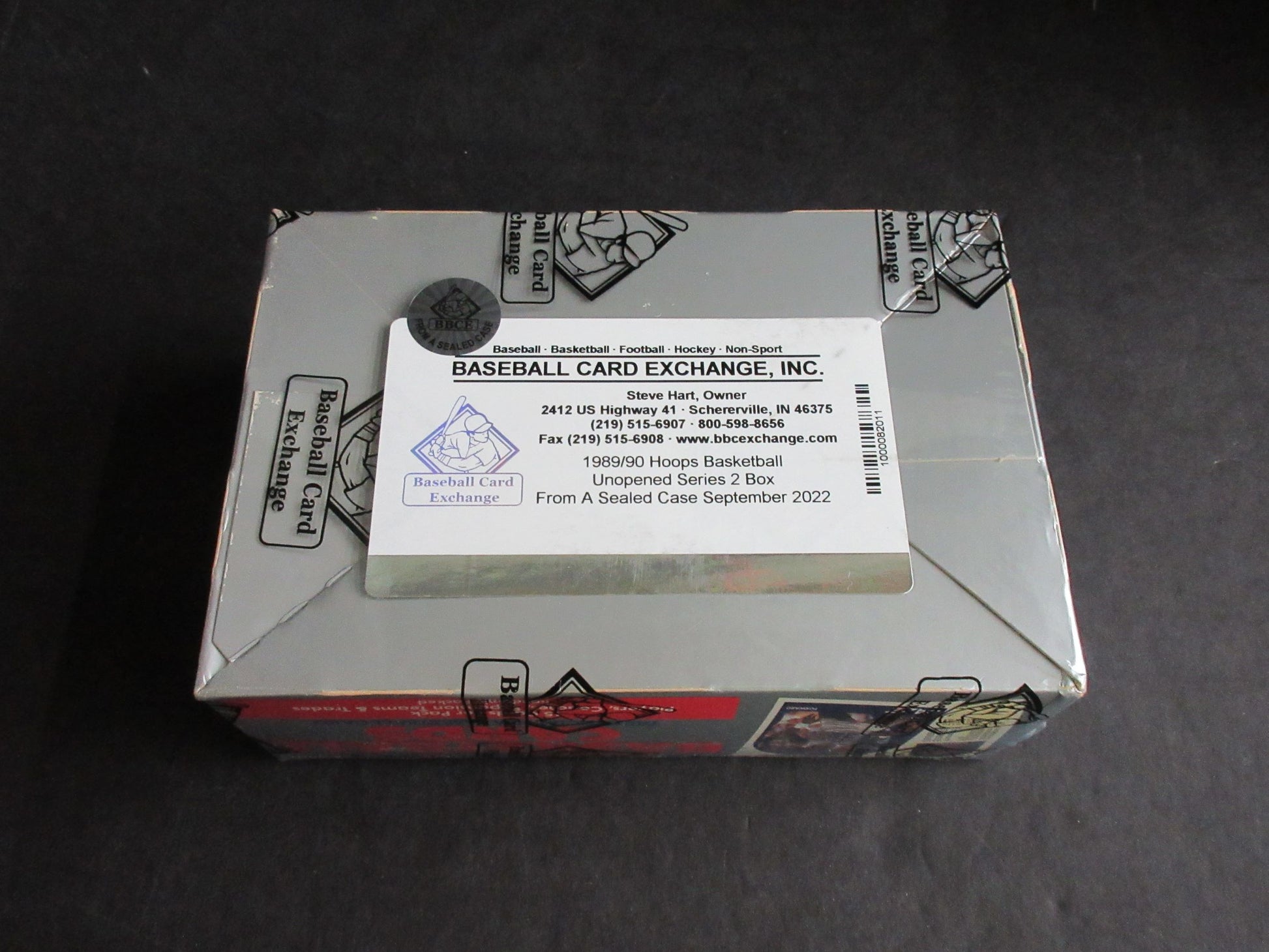 1989/90 Hoops Basketball Series 2 Box (FASC). Box contains (36) unopened packs. We just opened a sealed case of these! Boxes will be labeled on bottom "From a Sealed Case". This box has been authenticated and wrapped in Baseball Card Exchange shrink wrap.