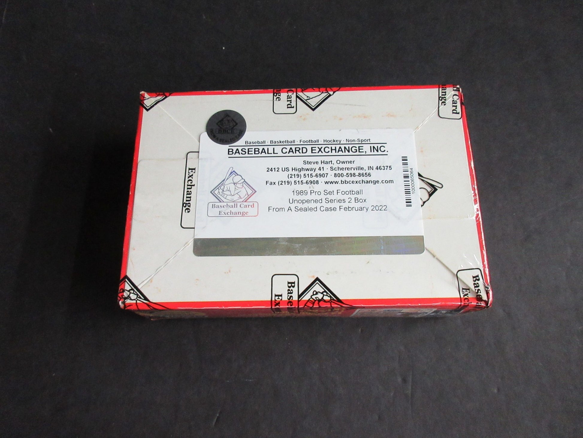 1989 Pro Set Football Unopened Series 2 Box (FASC). This box contains (36) unopened packs. This box has been authenticated as "From A Sealed Case" and wrapped in Baseball Card Exchange shrink wrap.