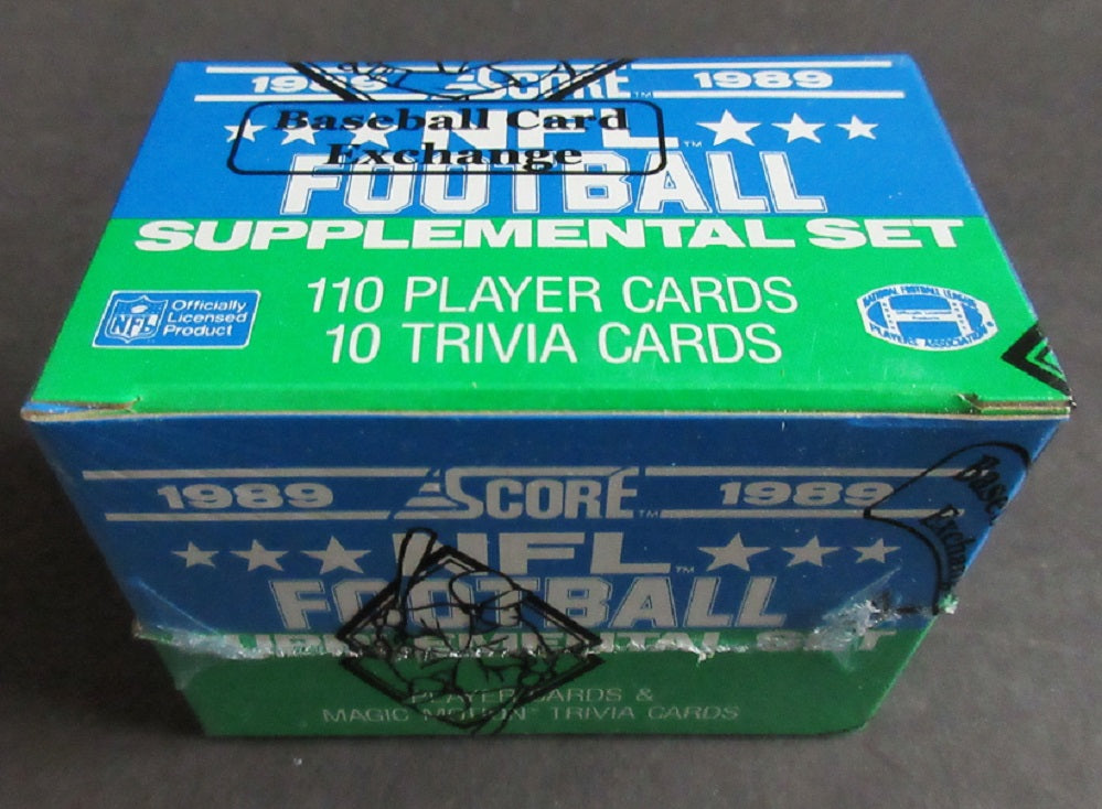1989 Score Football Supplemental Factory Set (FASC). This Factory Set of (110) cards has been authenticated as From A Sealed Case and wrapped in Baseball Card Exchange shrink wrap.