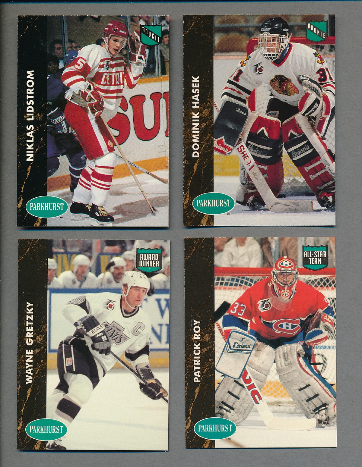 1991/92 Parkhurst Hockey Complete Set. This complete set contains (450) cards. The following insert set is also included: PHC (1-9). The overall condition of this set averages NM/MT to MINT.