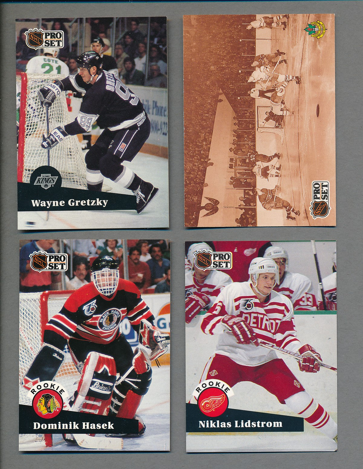 1991/92 Pro Set Hockey Complete Set. This complete set contains (615) cards. The following insert sets are also included: CC (1-9), Player of the Month (1-6), & Puck Candy (1-30). The overall condition of this set averages NM/MT to MINT.