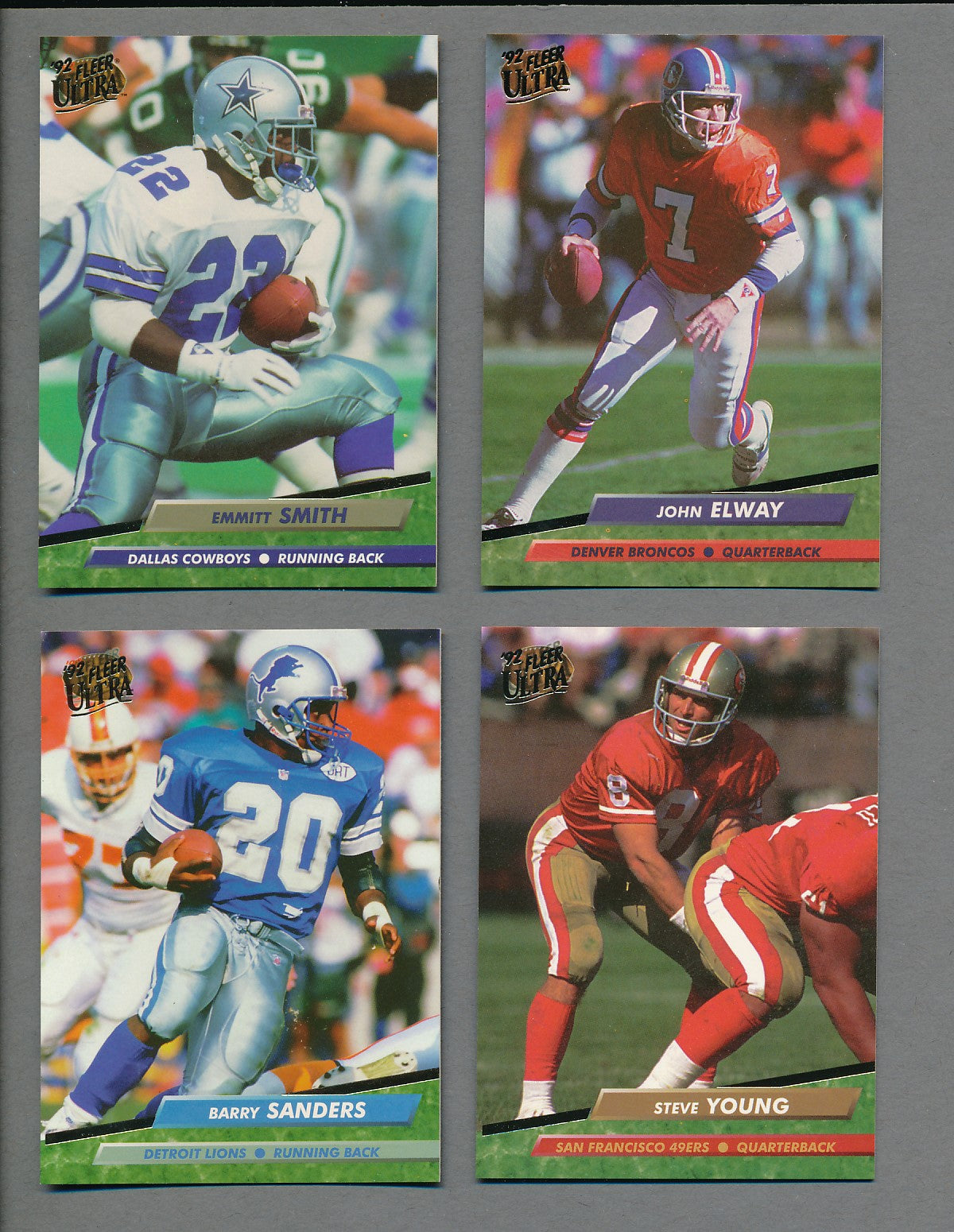 1992 Fleer Ultra Football Complete Set. This complete set contains (450) cards. The overall condition of this set averages NM/MT to MINT.