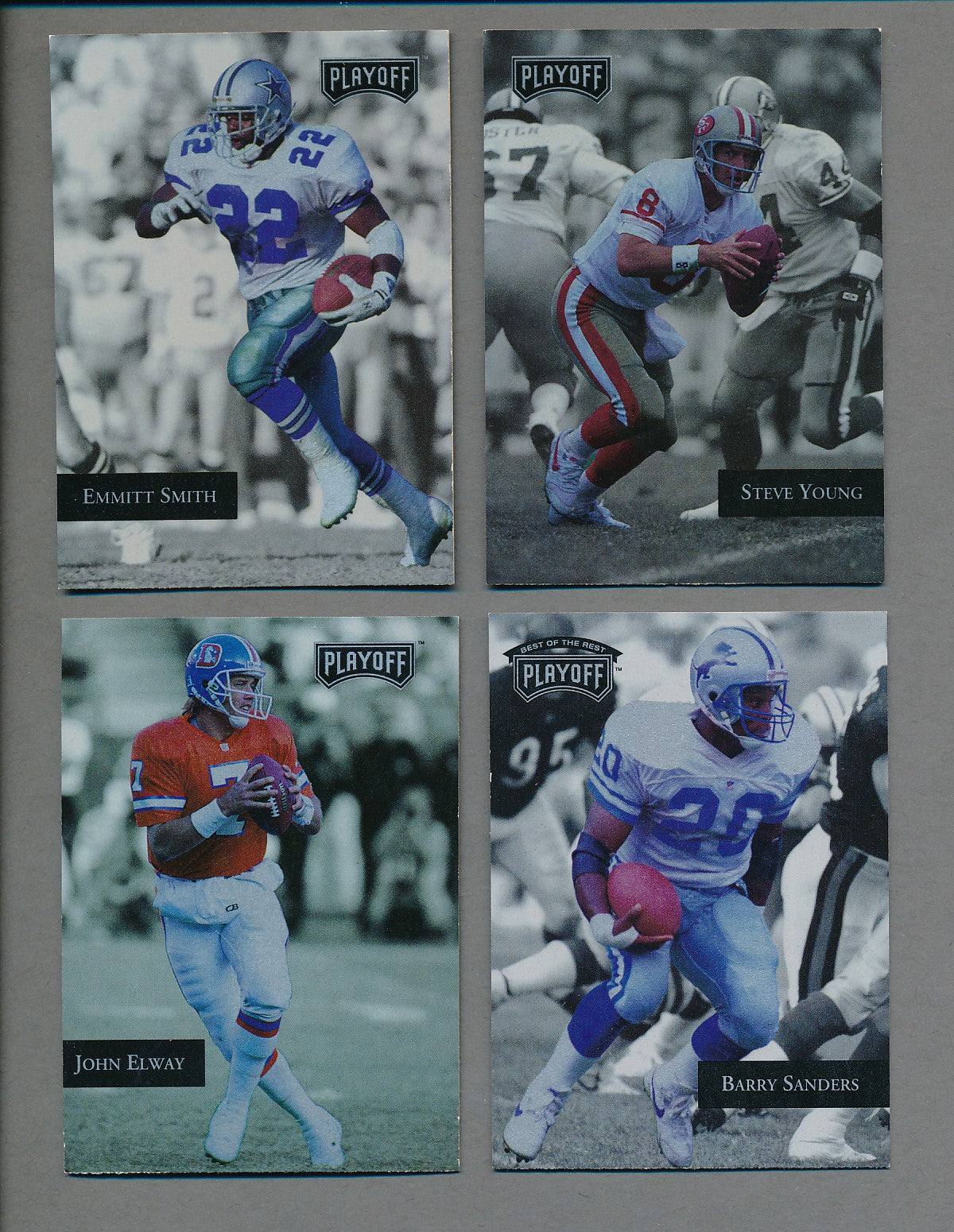 1992 Playoff Football Complete Set. This complete set contains (150) cards. The overall condition of this set averages NM/MT to MINT.