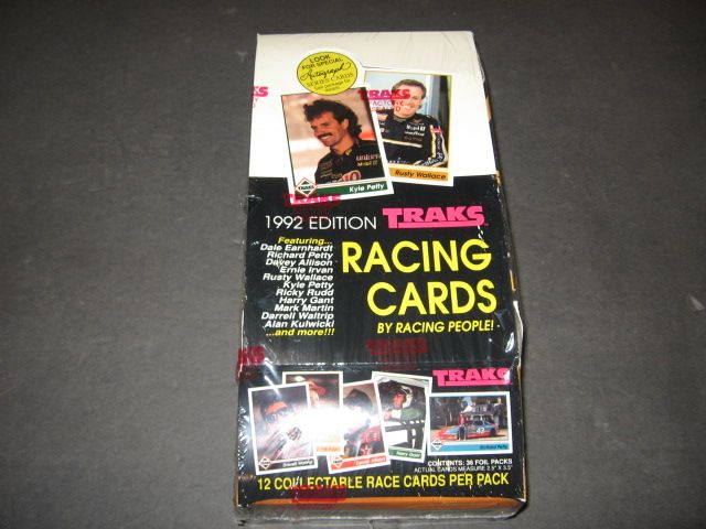 1992 Traks Racing Race Cards Box. Box contains 36 packs, each pack with 12 cards.