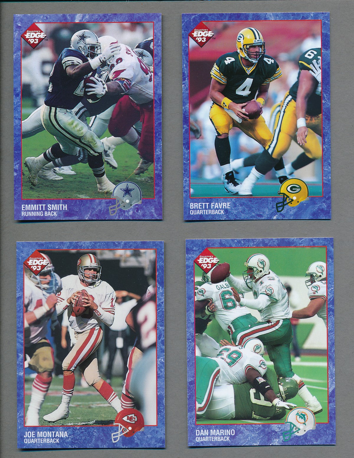 1993 Collector's Edge Football Complete Set (w/ Inserts). This complete set contains (325) cards. The following insert sets are also included: Elway Prisms (1-5), Prototypes (1-6), RU Prototypes (1-5), and Rookies FX (1-25). The overall condition of this set averages NM/MT to MINT.