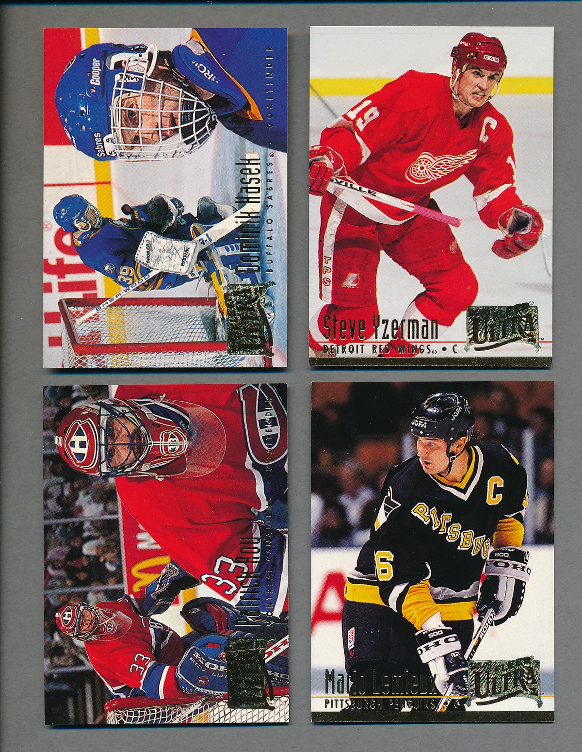 1994/95 Fleer Ultra Hockey Complete Series 1 Set (w/ Inserts). This complete Series 1 set contains (250) cards (1-250). The following insert sets are also included: Scoring Kings (1-7), Sergei Fedorov (1-10), Premier Pad Men (1-6), All-Rookies (1-10), All-Stars (1-12), Award Winners (1-8), & Ultra Power (1-10). The overall condition of this set averages NM/MT to MINT.
