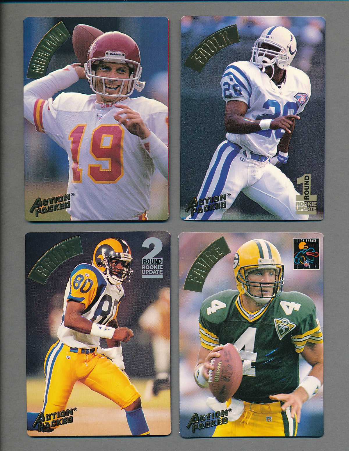 1994 Action Packed Football Complete Set (w/ Inserts). This complete set contains (198) cards. The following inserts sets are also included: Catching Fire (1-10), Warp Speed (1-12), Quarterback Club (1-20), Fantasy Forecast (1-42), and Monday Night Football (1-71). The overall condition of this set averages NM/MT to MINT.