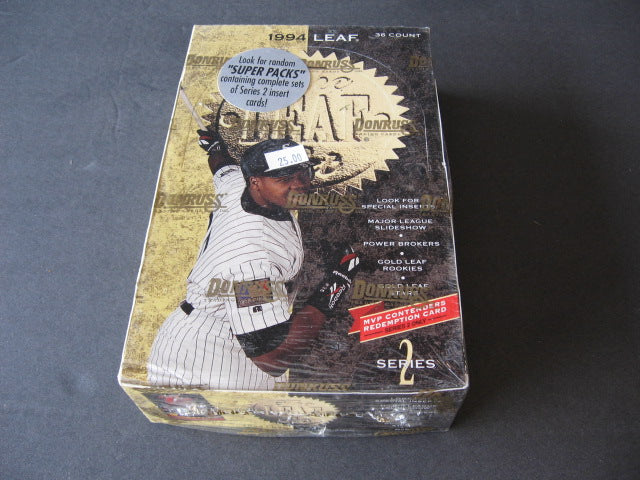 1994 Leaf Baseball Series 2 Box (Hobby) (36/12). This Hobby box contains (36) packs, each with (12) cards.