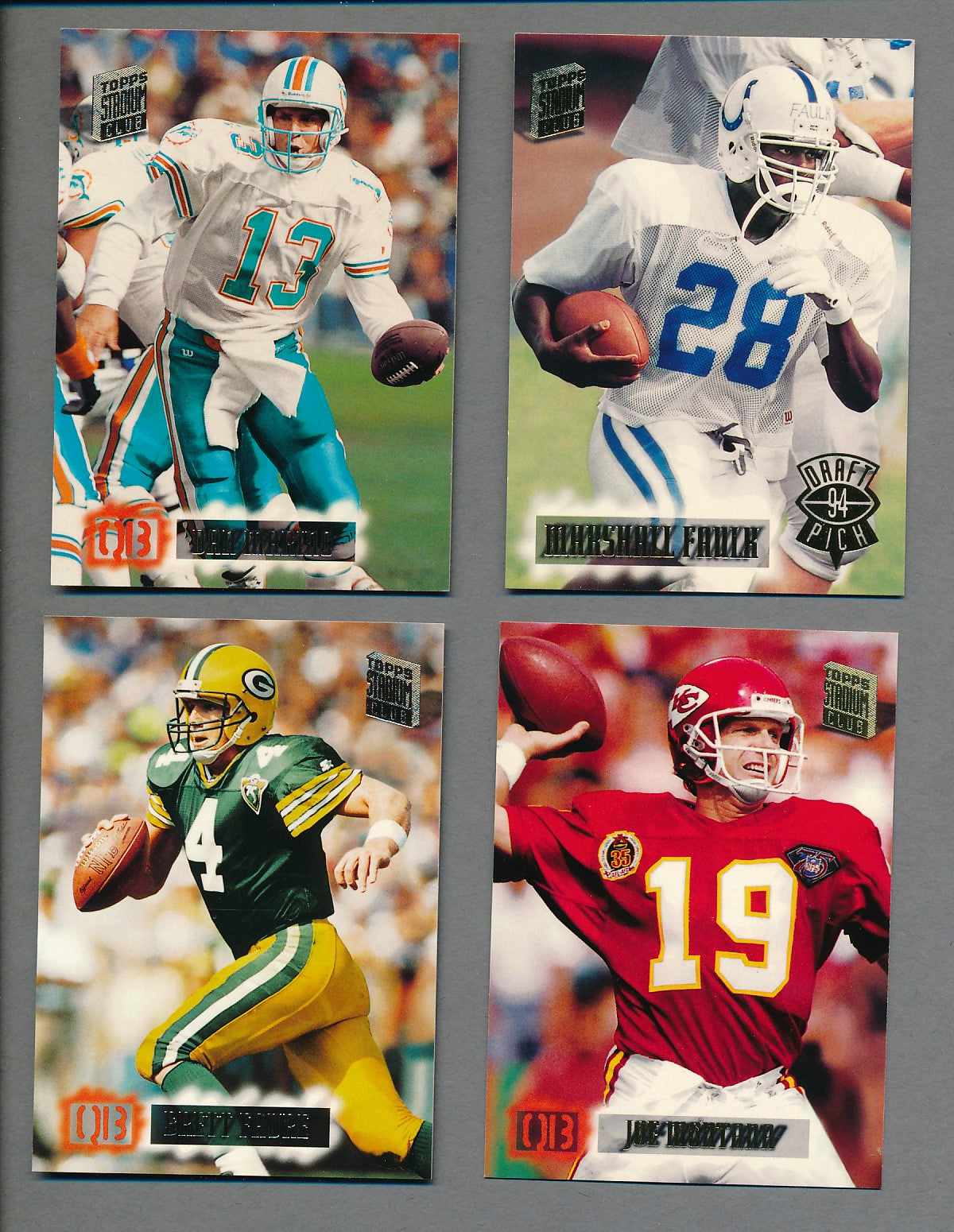 1994 Topps Stadium Club Football Complete Set (w/ Inserts). This complete set contains (630) cards. The following insert sets are also included: Dynasty & Destiny (1-6), Ring Leaders (1-12), and Bowman's Best (1-45). The overall condition of this set averages NM/MT to MINT.