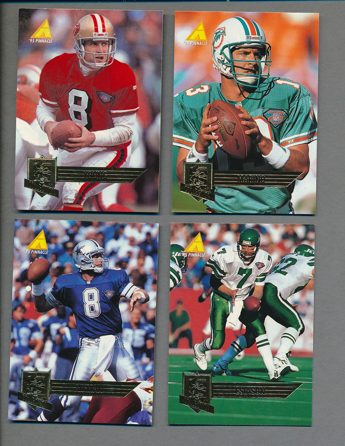 1995 Pinnacle Quarterback Club Collection Football Complete Set. This complete set contains (261) cards. The overall condition of this set averages NM/MT to MINT.