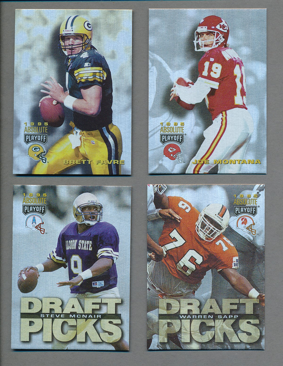 1995 Playoff Absolute Football Complete Set (w/ Inserts). This complete set contains (200) cards. The following insert sets are also included: Pigskin Previews (1-12) and Die Cut Helmets (1-30). The overall condition of this set averages NM/MT to MINT.