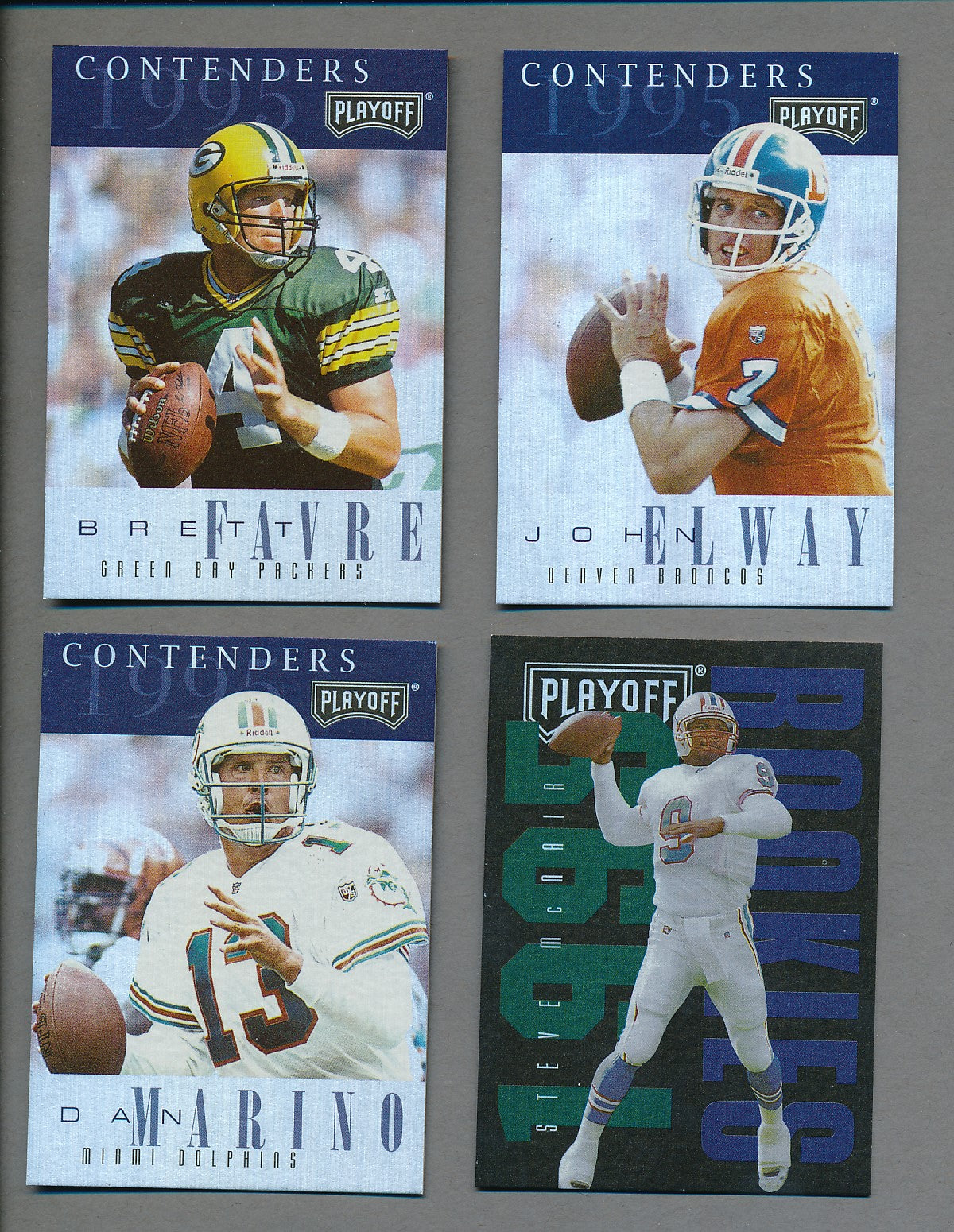 1995 Playoff Contenders Football Complete Set (w/ Inserts). This complete set contains (150) cards. The following insert sets are also included: Back-to-Back (1-75), Hog Heaven (1-30), and Rookie Kickoff (1-30). The overall condition of this set averages NM/MT to MINT.