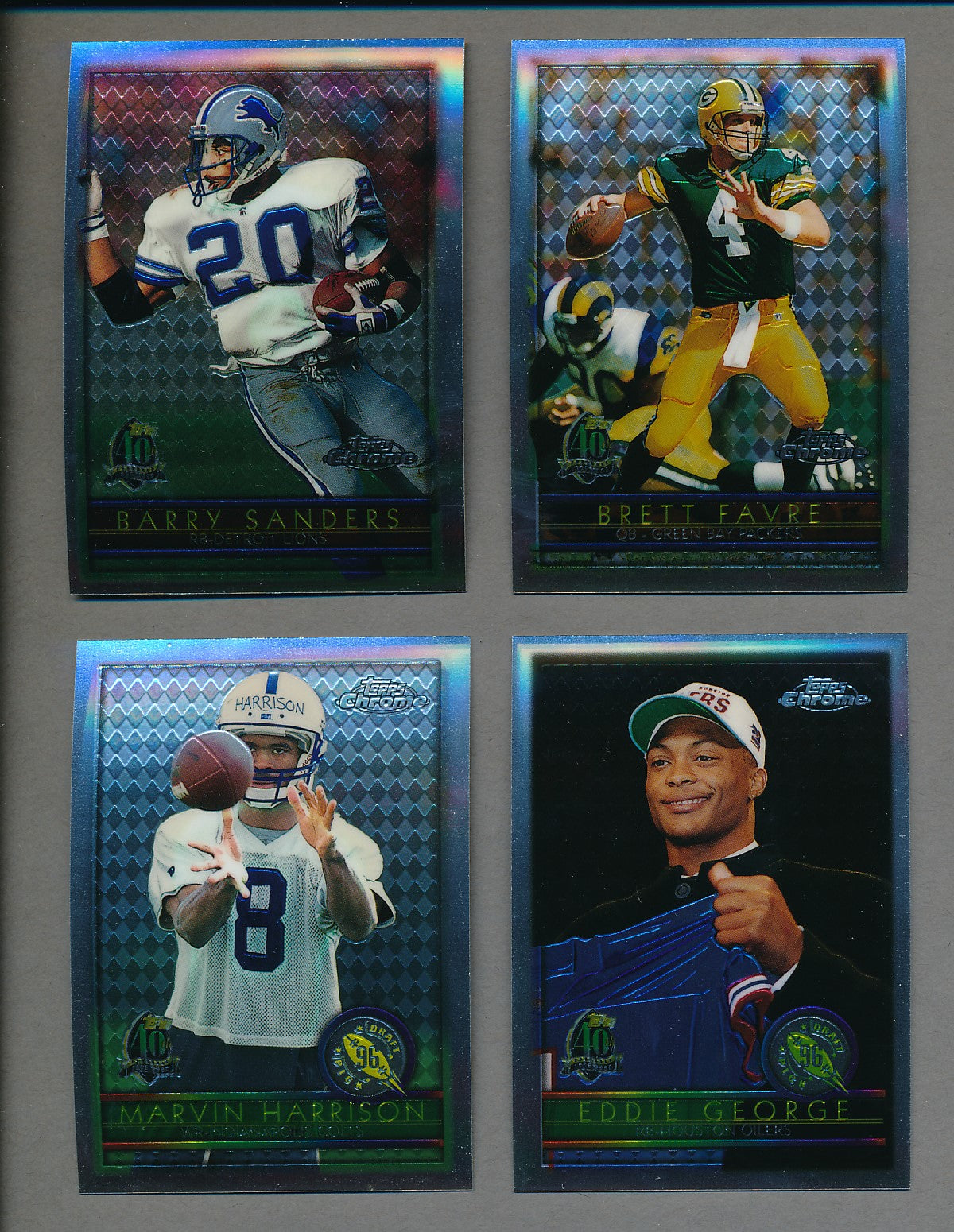 1996 Topps Chrome Football Complete Set. This complete set contains (165) cards. The overall condition of this set averages NM/MT to MINT.