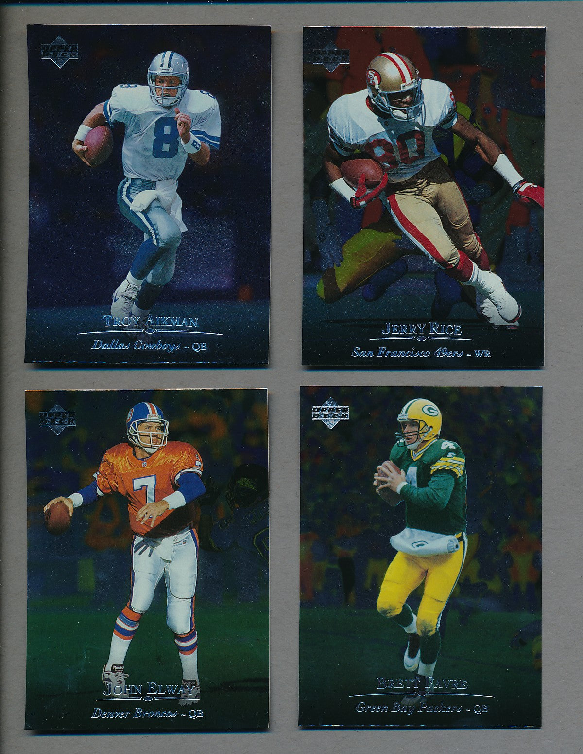 1996 Upper Deck Silver Football Complete Set. This complete set contains (225) cards. The overall condition of this set averages NM/MT to MINT.