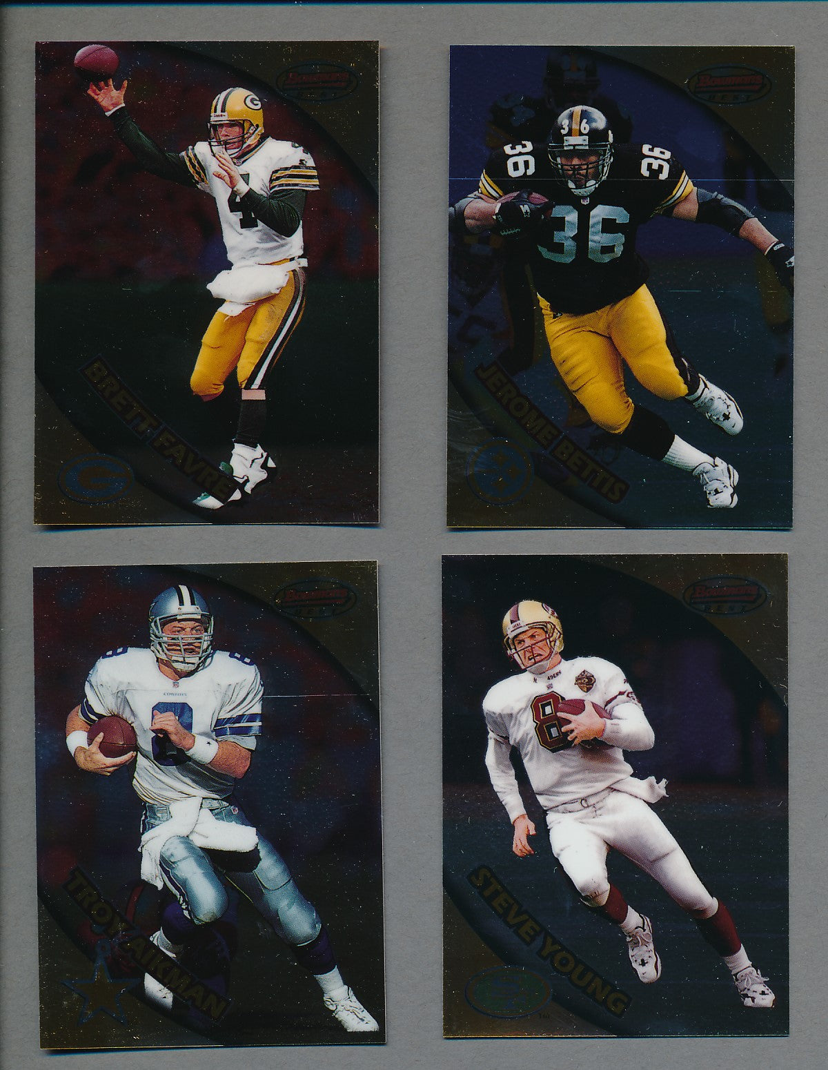 1997 Bowman's Best Football Complete Set (w/ Inserts). This complete set contains (125) cards. The following insert sets are also included: Best Cuts (1-20) and Mirror Images (1-10). The overall condition of this set averages NM/MT to MINT.