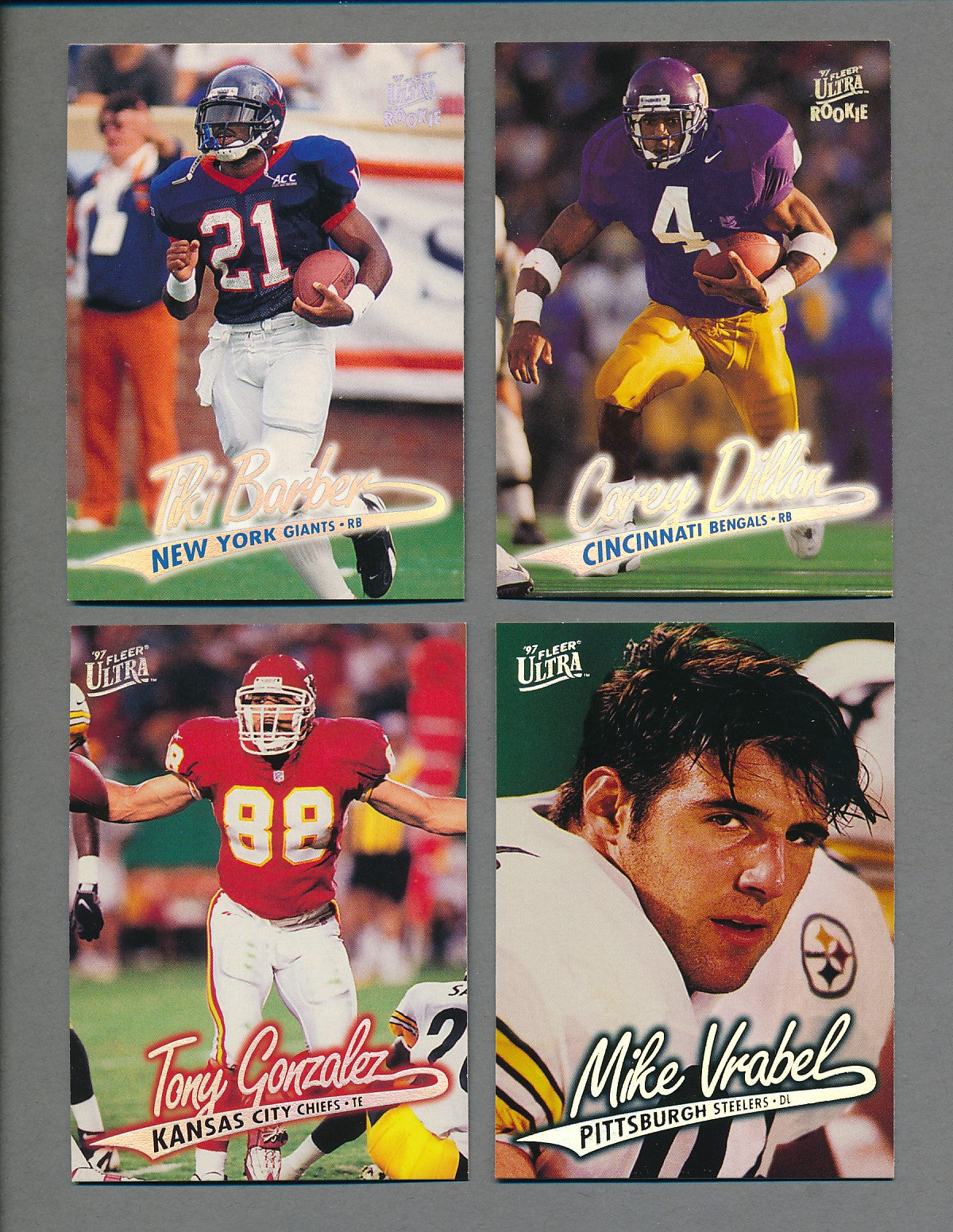 1997 Fleer Ultra Football Complete Set. This complete set contains (350) cards. The overall condition of this set averages NM/MT to MINT.