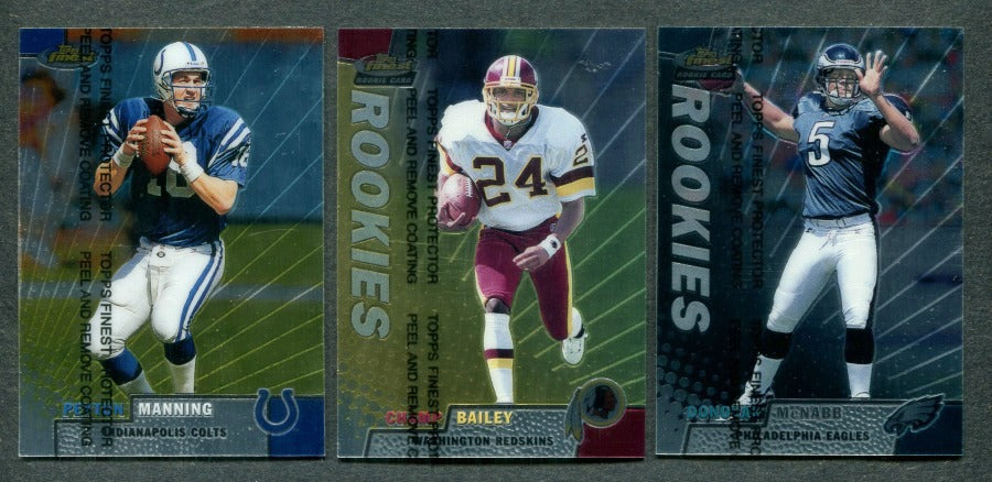 1999 Topps Finest Football Set. This complete set of (175) cards includes the Rookie Card of Edgerrin James, Ricky Williams, Donovan McNabb and others. The overall condition of this set averages NM/MT to MT.