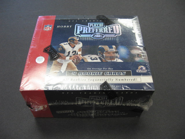 2001 Playoff Preferred Football Unopened Foil Box. Box is hobby and conatains 12 packs, each pack with 3 cards.