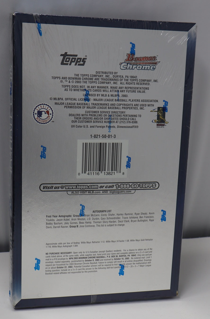 2003 Bowman Chrome Baseball Box (Hobby) (18/4). This Hobby box contains (18) packs, each with (4) cards. Look for (1) Autograph card per box (on average).