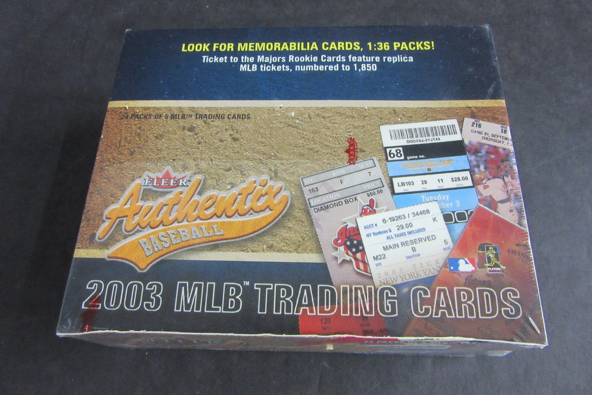 2003 Fleer Authentix Baseball Box (Retail). This Retail box contains (24) packs, each with (5) cards.