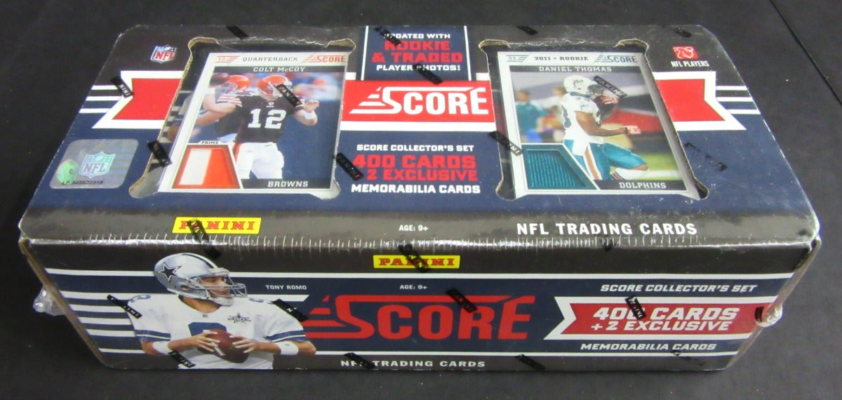 2011 Panini Score Football Factory Set . Complete (400) cards set plus two memorabilia cards.