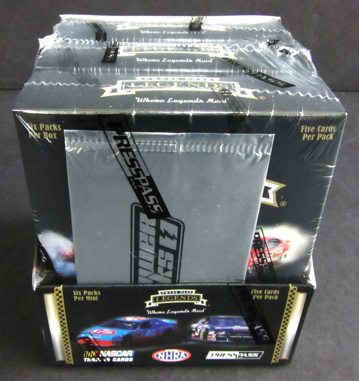 2012 Press Pass Legends Racing Race Cards Box. Each Hobby box contains (3) mini boxes; each mini box has (6) packs with (5) cards. Each Hobby box has (3) autogrpahs (on average).