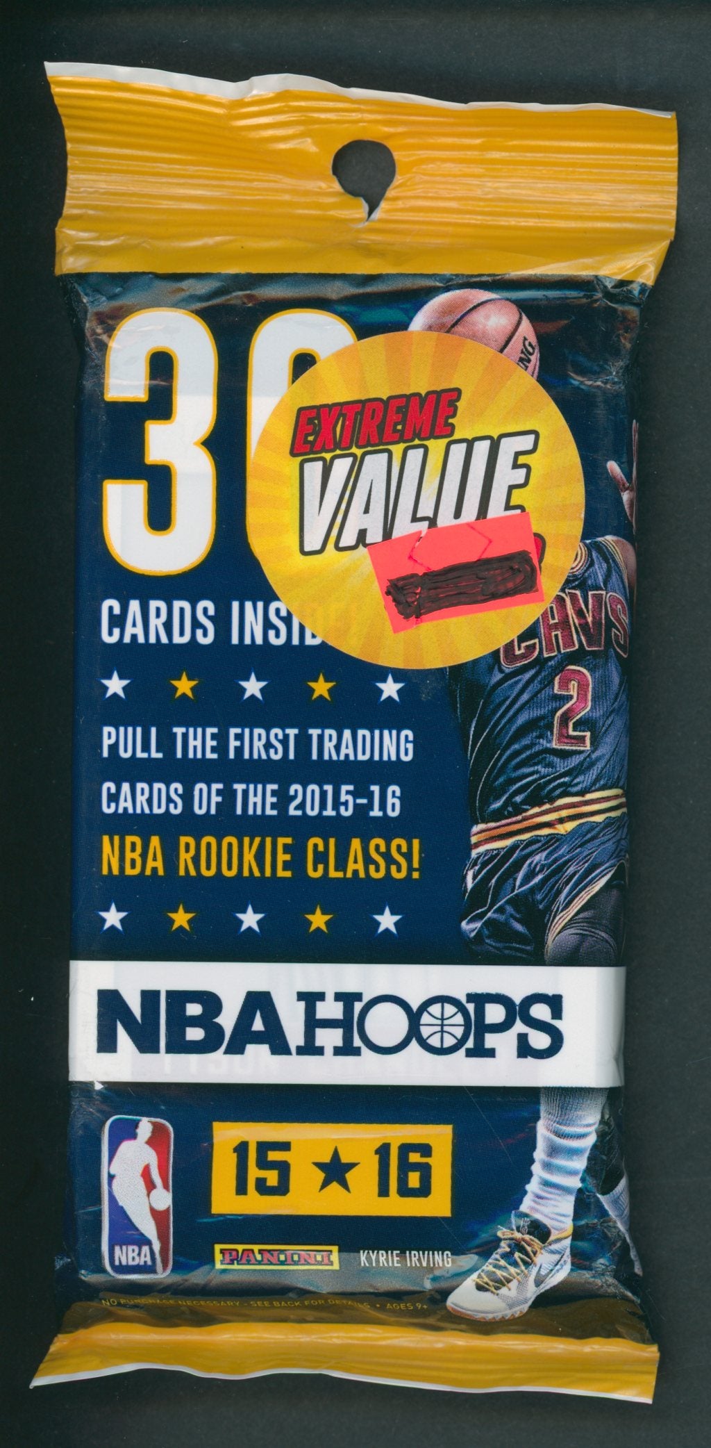 2015/16 Panini Hoops Basketball Cello Fat Pack (30). This unopened Cello Fat Pack contains (30) cards.