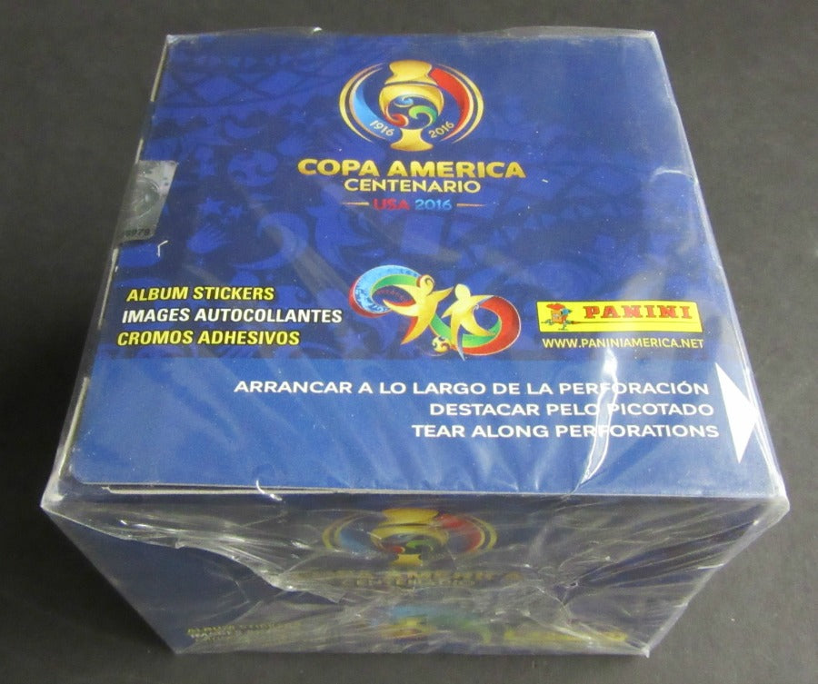 2016 Panini Copa American Centenario Soccer Stickers Box. This box contains (50) packs, each with (7) stickers.