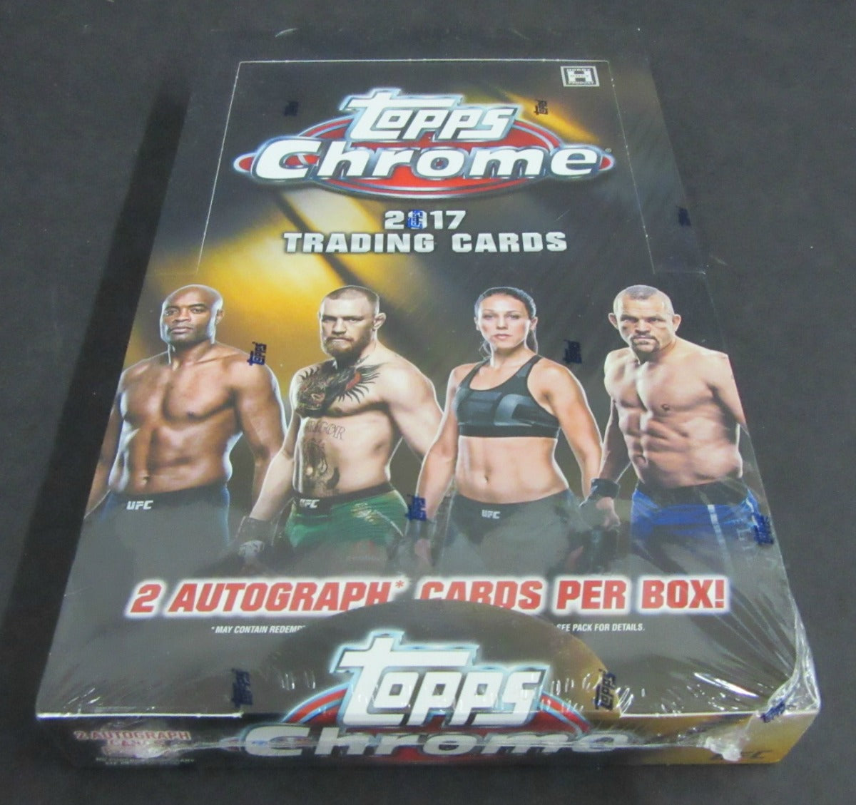 2017 Topps Chrome UFC Box. This Hobby box contains (24) packs, each with (4) cards. Two autographs per box.