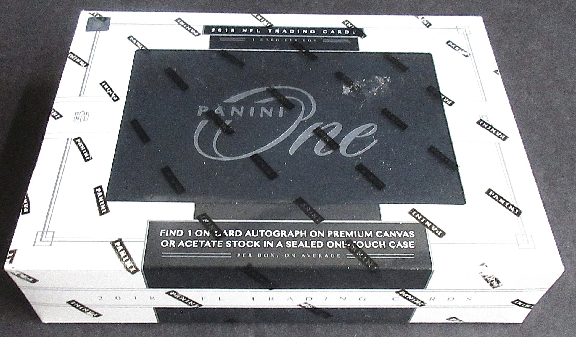 2018 Panini One Football Box (Hobby) (1/1). This Hobby box contains (1) pack with (1) Encapsulated On-Card Autograph.
