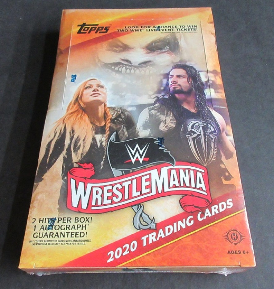 2020 Topps WWE Wrestling Road To Wrestlemania Box (Hobby) (24/7). This Hobby box contains (24) packs, each with (7) cards. Look for (2) Hits, including (1) Autograph card per box (on average).