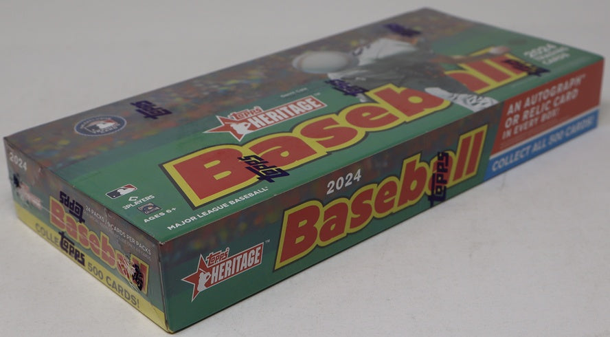 2024 Topps Heritage Baseball Box (Hobby) (24/9). This Hobby box contains (24) packs, each with (9) cards. Each box has (1) Autograph or Relic card (on average).
