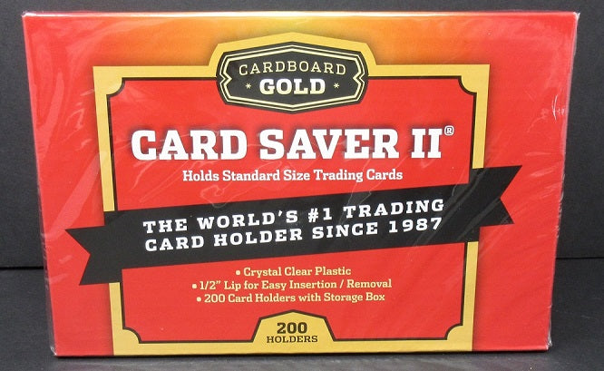 Cardboard Gold Card Saver II Box (200 Count). Clear plastic holder measuring 3" x 4" including a 1/2" lip for easy insertion and removal. This box contains four (50) count packages.