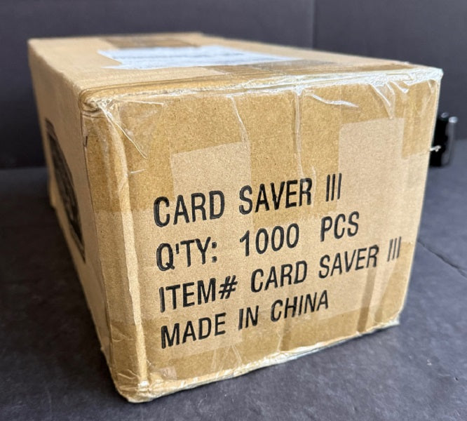 Cardboard Gold Card Saver III Case (20/50). Clear plastic holder measuring 3 1/3" x 5 1/2" including a 1/2" lip for easy insertion and removal. This case contains (20) packs, each with (50) holders.