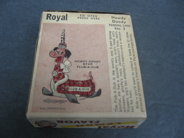 1950 Royal Pudding Howdy Doody Flub-A-Dub Unopened Box. This 1950 Royal Pudding box is still sealed (with the lemon pudding inside). The back panel features Howdy Doody Star Flub-A-Dub.