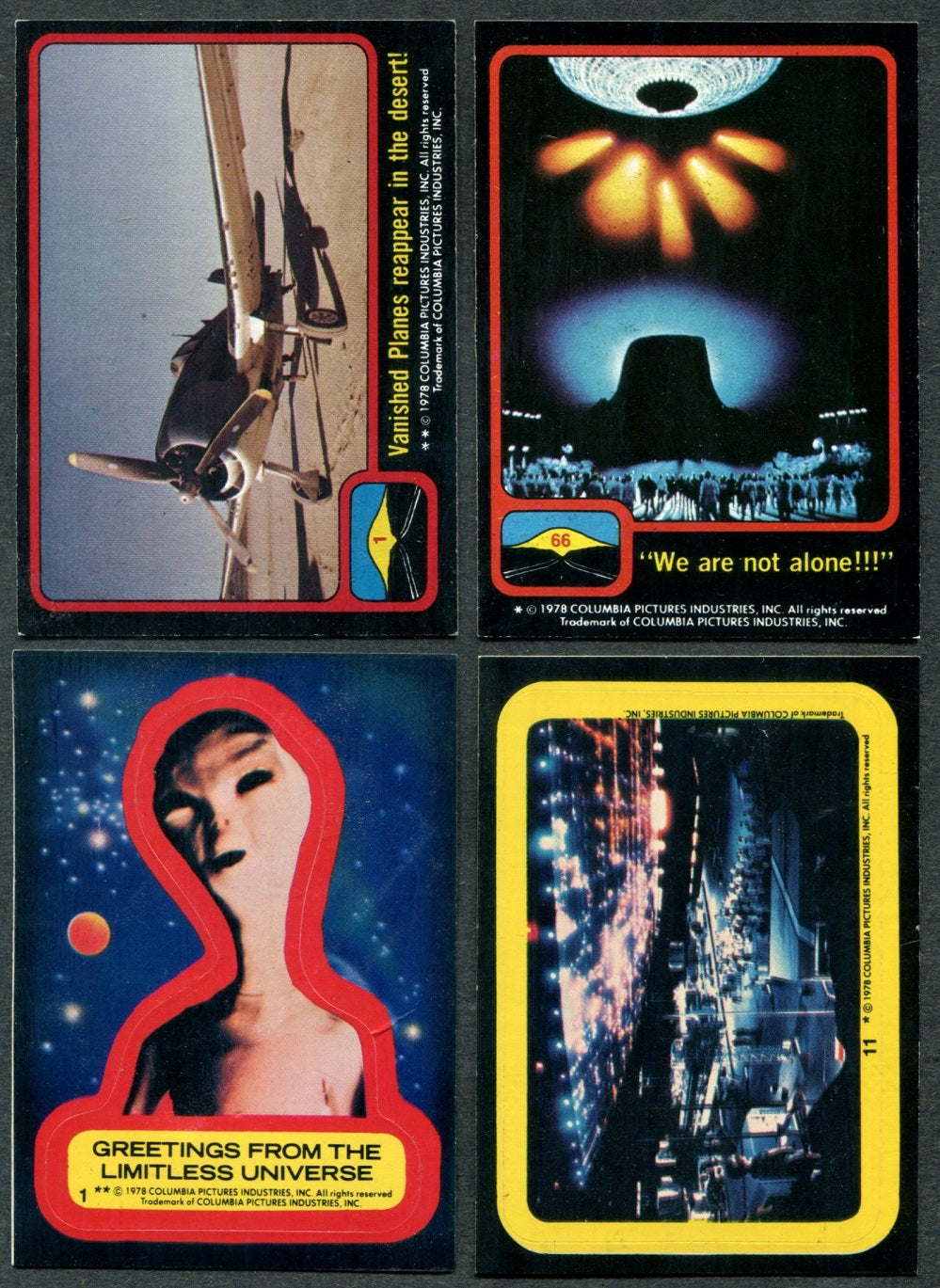 1978 Topps Close Encounters Complete Set (w/ stickers) (66/11) NM NM/MT. The overall condition of this set of (66) cards and (11) stickers would average NM to NM/MT.