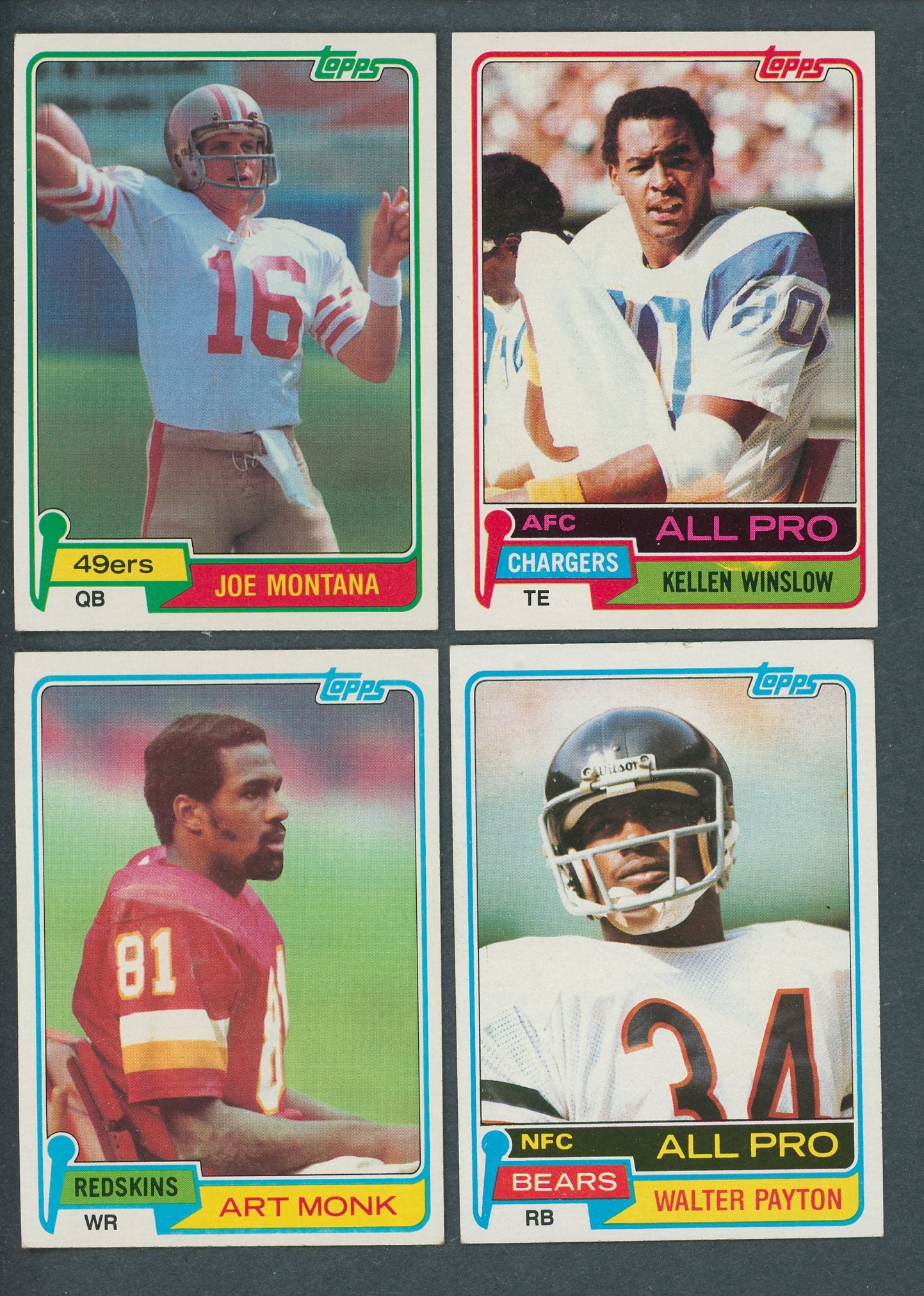 1981 Topps Football Complete Set EX/MT NM (528) (23-90). This complete set of (528) cards has an overall average condition of EX/MT to NM. Card #216 Joe Montana is in EX/MT condition.