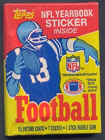 1985 Topps Football Unopened Wax Pack. Each unopened pack contains (15) cards and (1) sticker.