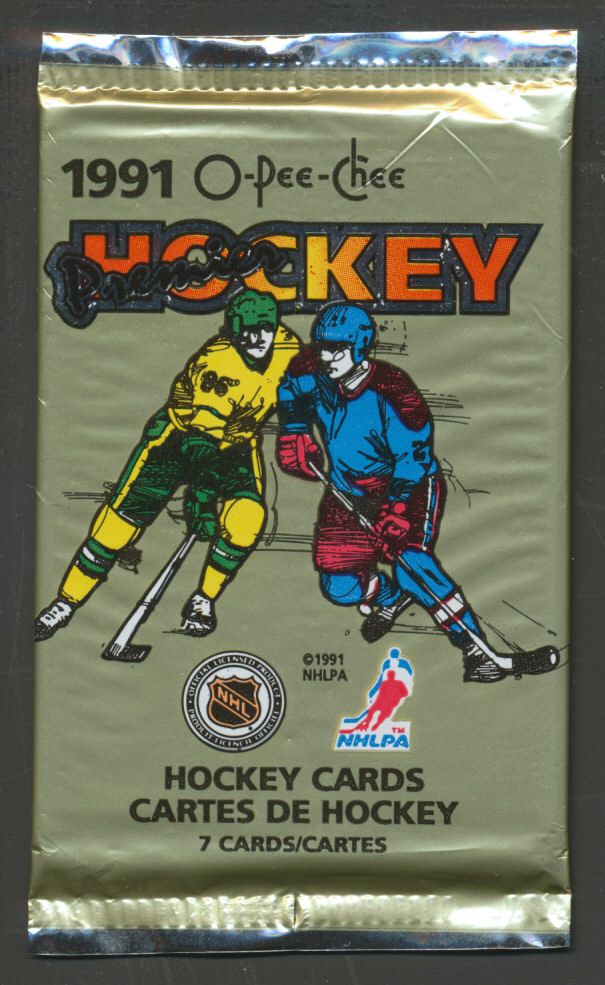1990/91 OPC O-Pee-Chee Premier Hockey Pack. Each unopened pack contains (7) cards.