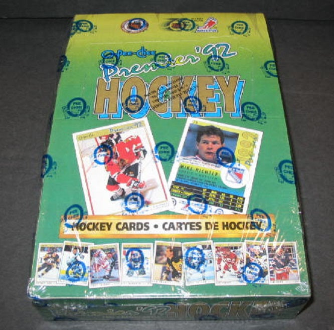 1991/92 OPC O-Pee-Chee Premier Hockey Box. This box contains (36) packs, each with (8) cards.